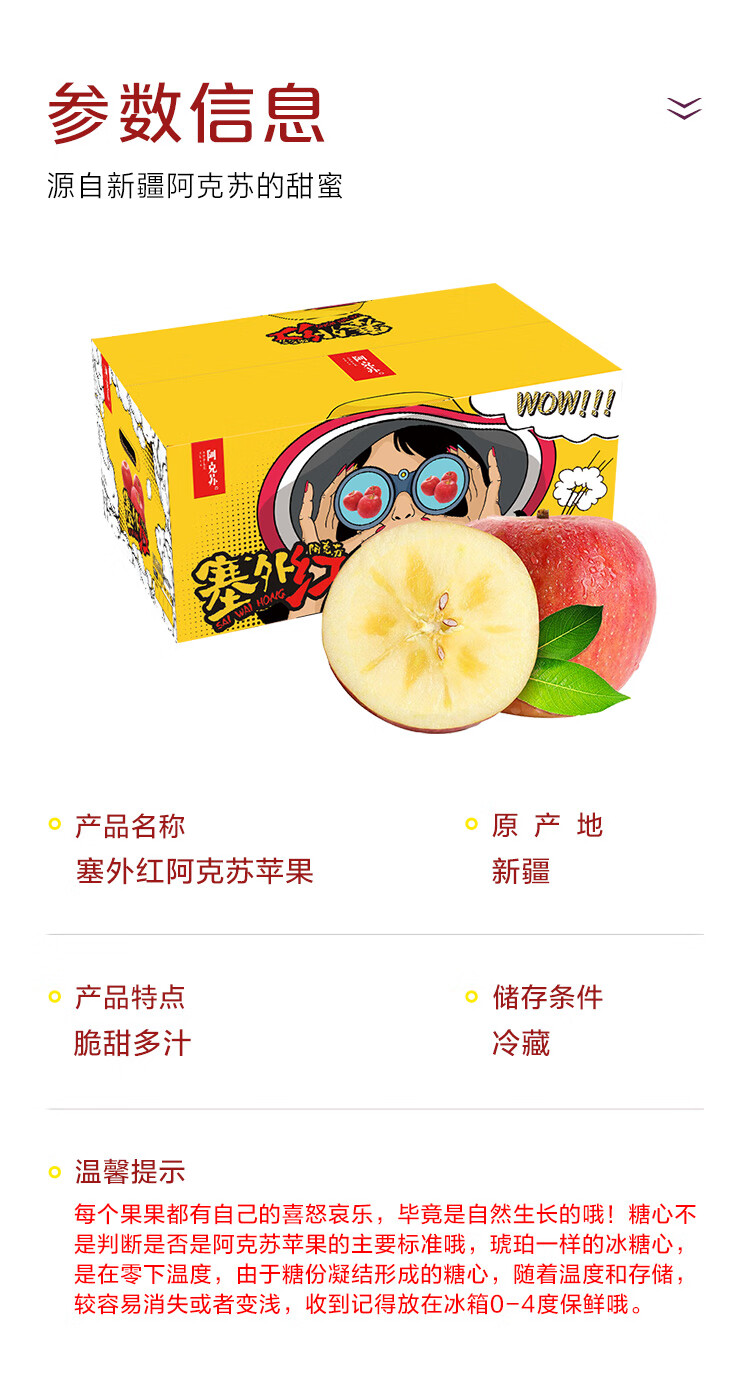 塞外红阿克苏苹果礼盒5kg果径80-85mm生鲜水果