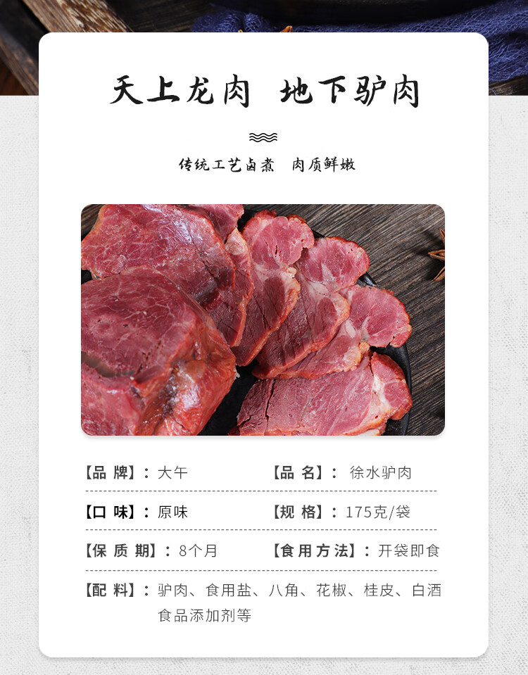 大午徐水驴肉175g休闲零食小吃常温熟食驴肉火烧真空包装河北保定特产